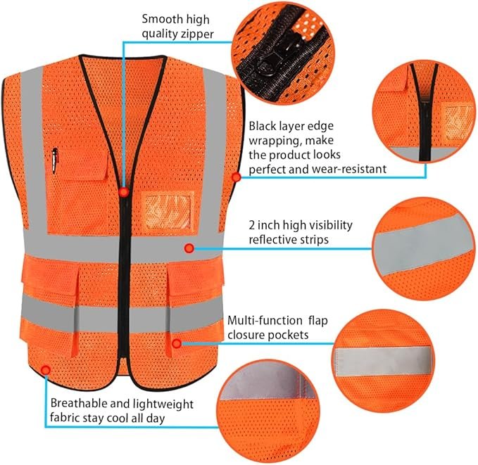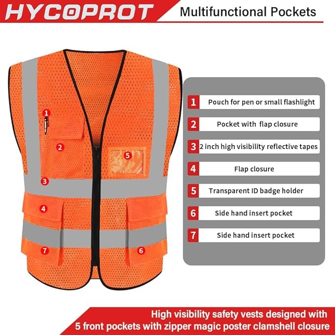 HYCOPROT Gilet de Sécurité Haute Visibilité avec Poches 3D